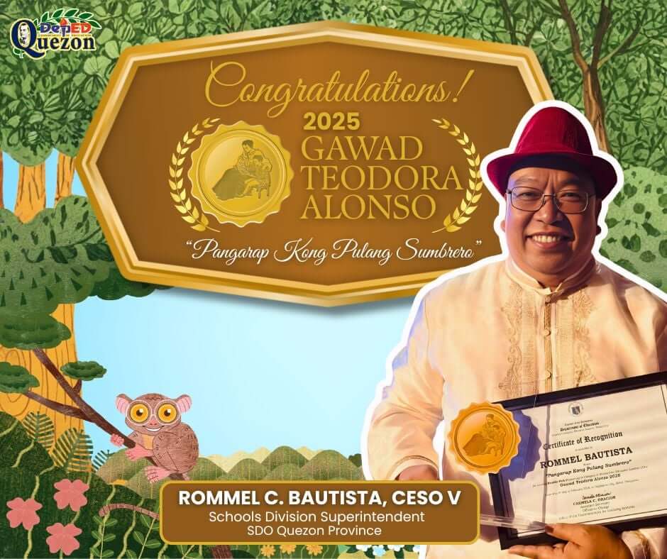 The entire Schools Division Office of Quezon joins in celebrating your remarkable achievement as one of the most inspiring storytellers of Gawad Teodora 2025.