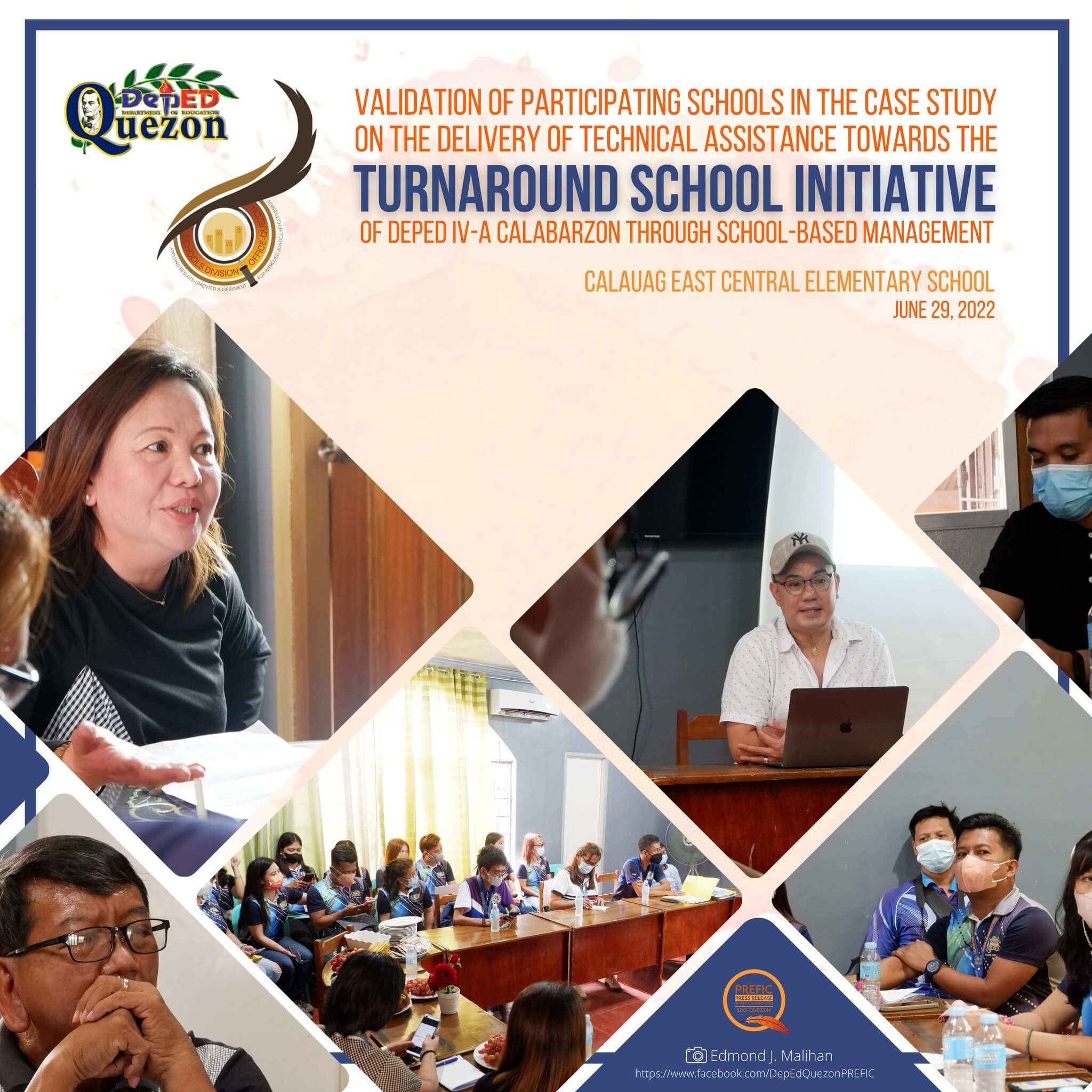 To provide research-based evidence as input in developing more relevant and responsive guidelines in the delivery of technical assistance to turnaround public schools, DepEd IV-A CALABARZON personnel conducted a regional validation in Calauag East Central Elementary School and Camflora National High... Read More >>