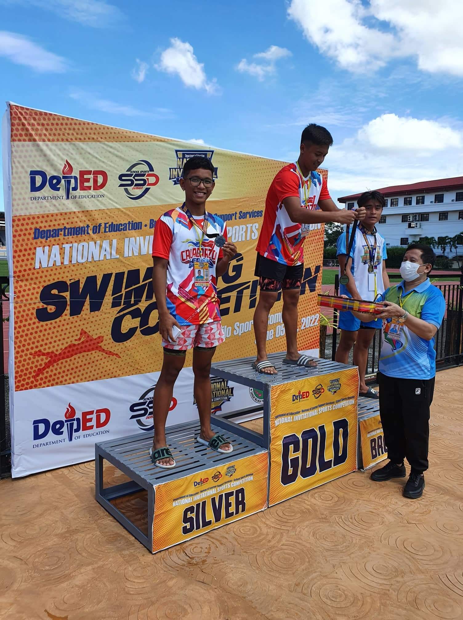 Nicolas Ivan Radovan of Paaralang Sekundarya ng Lucban Integrated School (PSLIS) paddled for gold and bronze medals in different events pushing CALABARZON’s championship in men’s swimming during the recent National Invitational Sports Competition (NISC) held in IloIlo City. Radovan finished with precision in 100 m butterfly and 200 m butterfly to notch gold medals, while bronze for 400m individual medley and another bronze for 1,500 freestyle. DepEd Quezon through the top management headed by OIC – SDS Elias A. Alicaya Jr congratulates Radovan for adding another feather on SDO Quezon’s cap. #